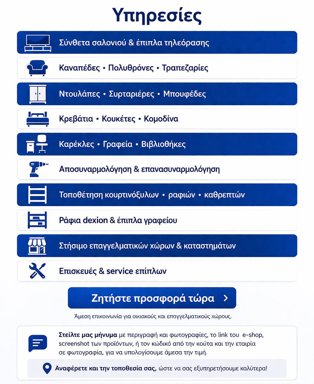 Κλείστε εύκολα & γρήγορα ραντεβού για:Συναρμολογήσεις Επίπλων | Μεταφορές – Μετακομίσεις | Αποξηλώσεις
